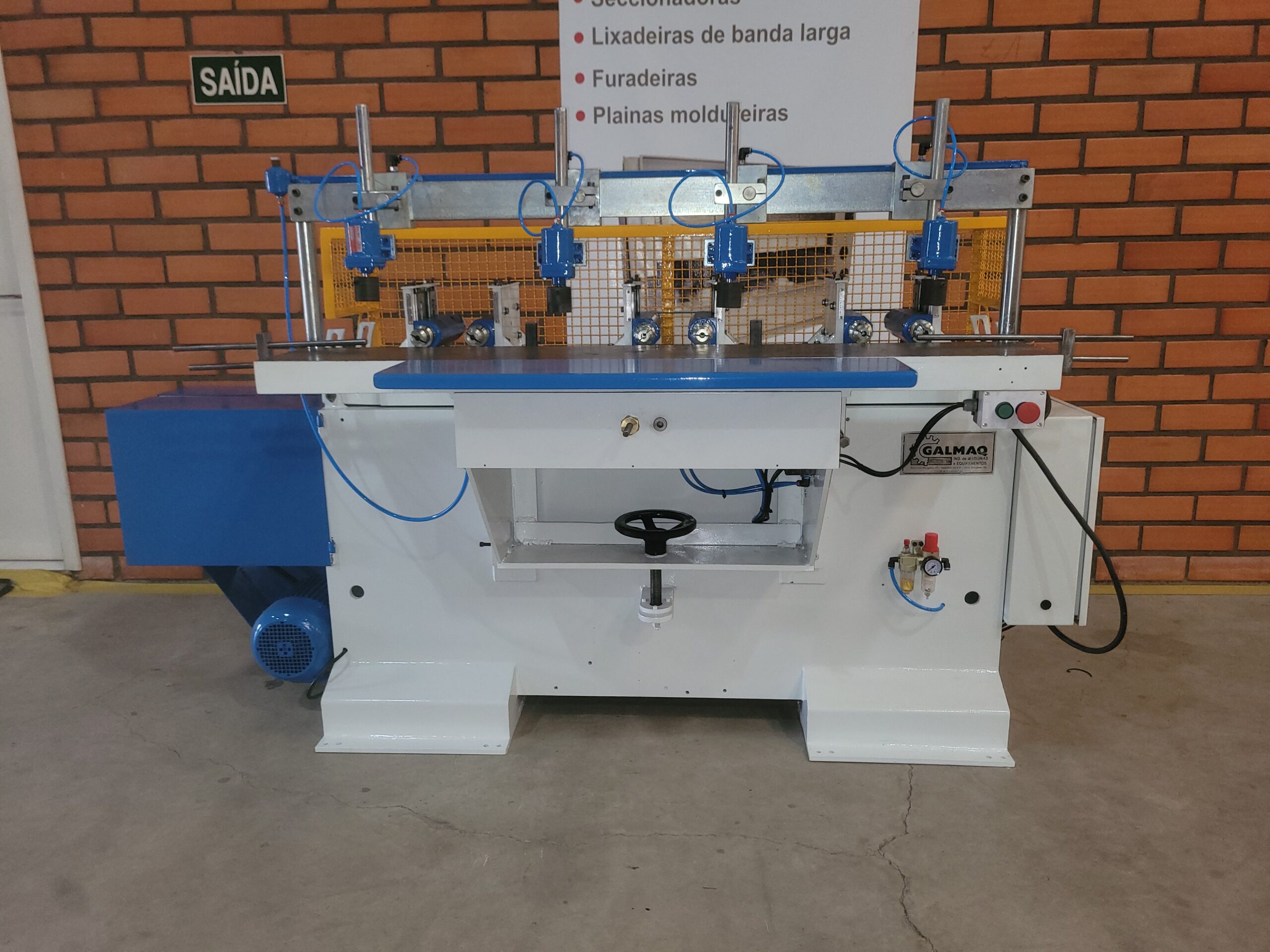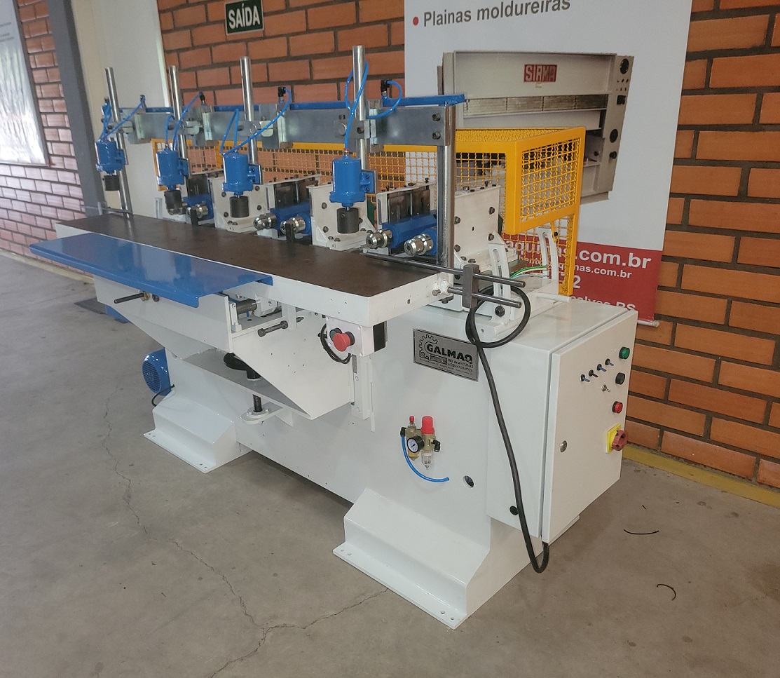Composta de 06 cabeçotes, com 03 blocos de oscilação de 02 cabeçotes cada, o que permite regular com medidas diferentes de rasgo, os dois blocos das extremidades possuem inclinação de ângulo, mesa de 1500 mm com 04 cilindros prensores.