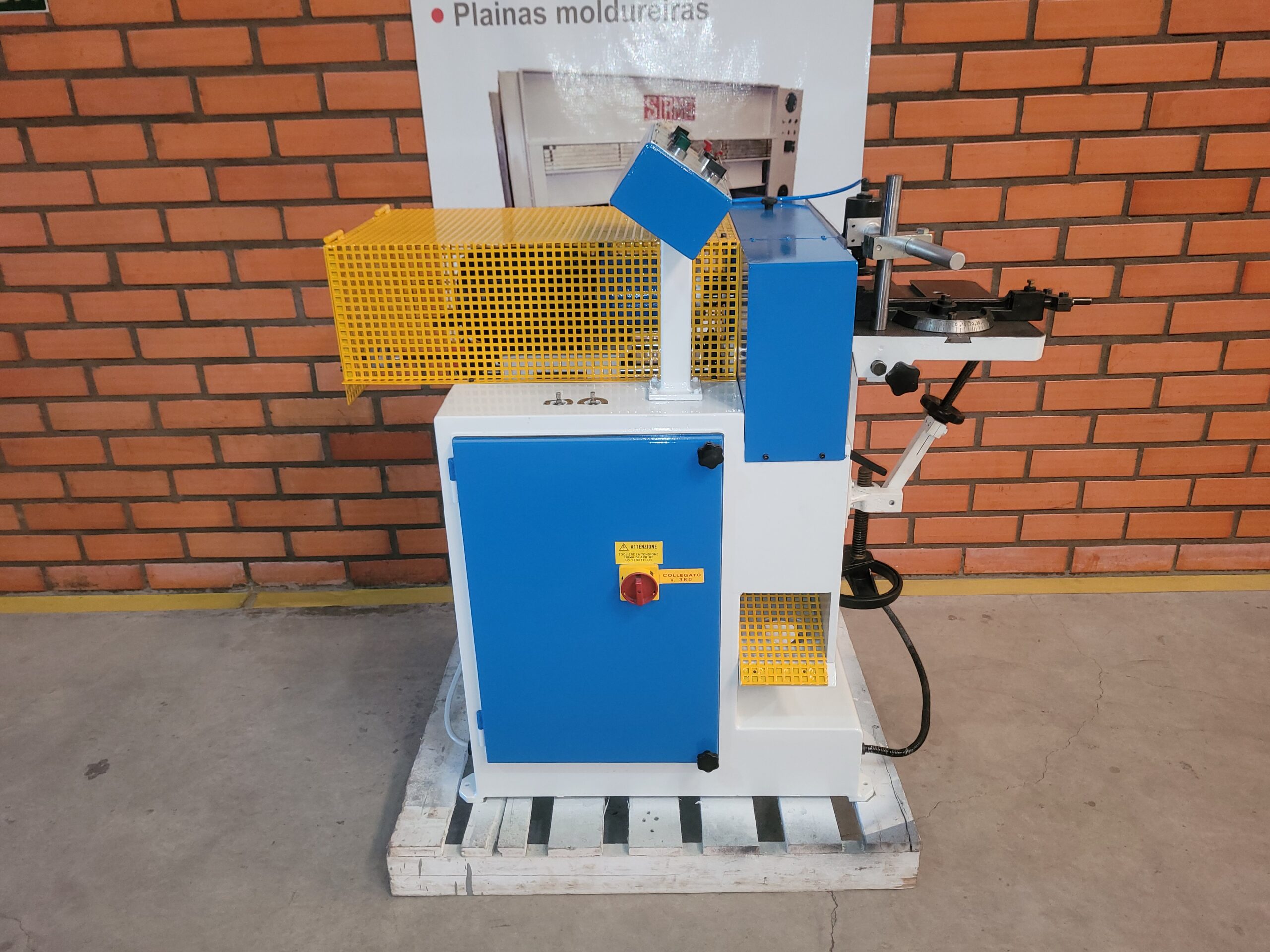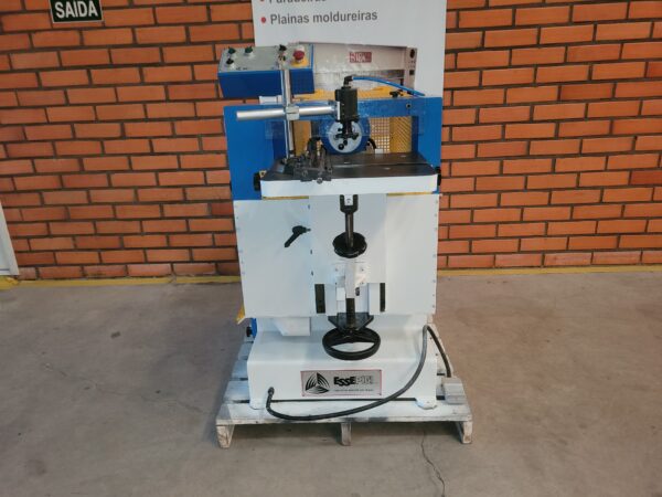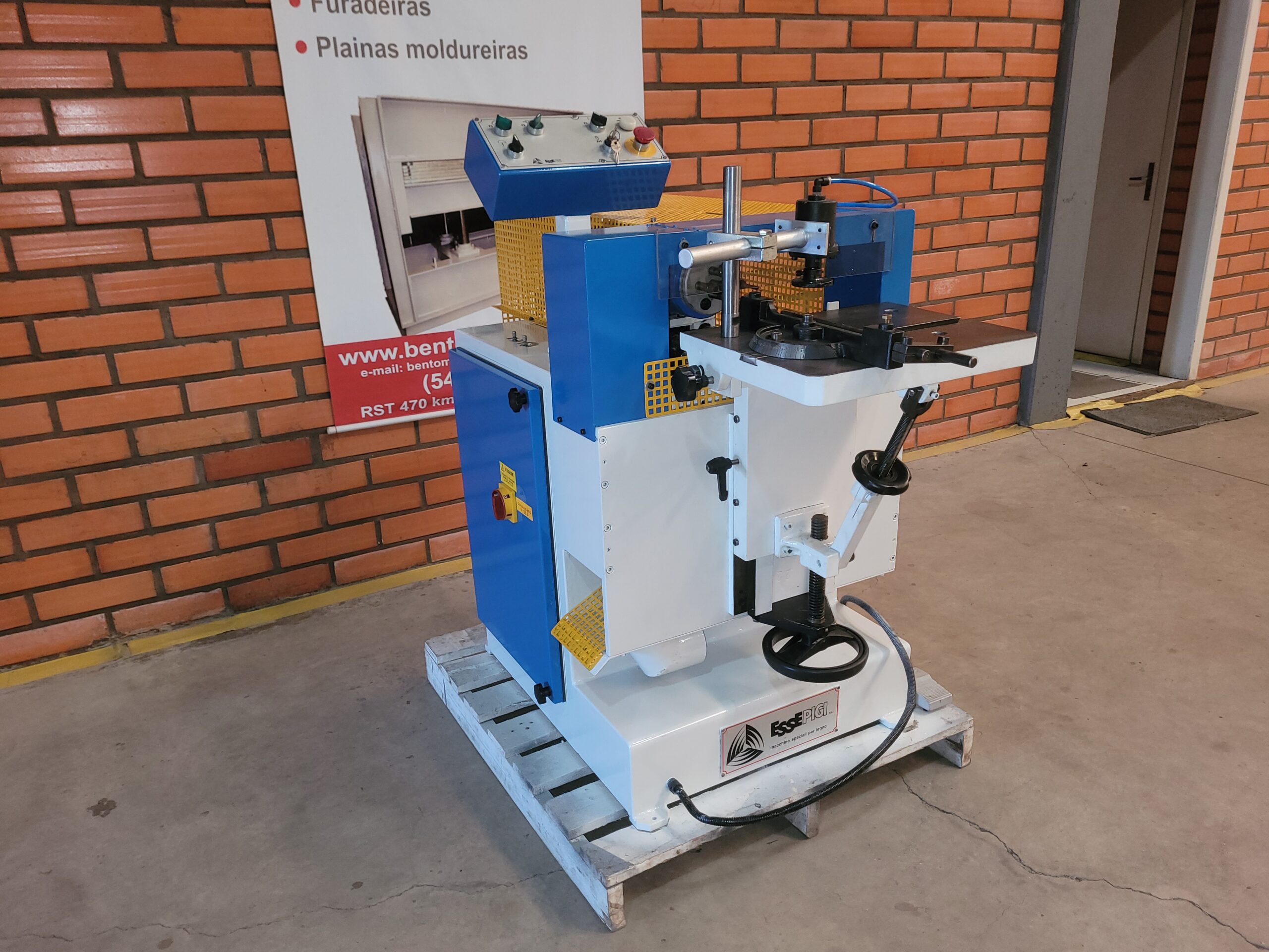 Máquina versátil, com possibilidade de destopar já a peça, reta ou em ângulo, bem como cabeçote de furação com 05 mandris para uso como desejado.